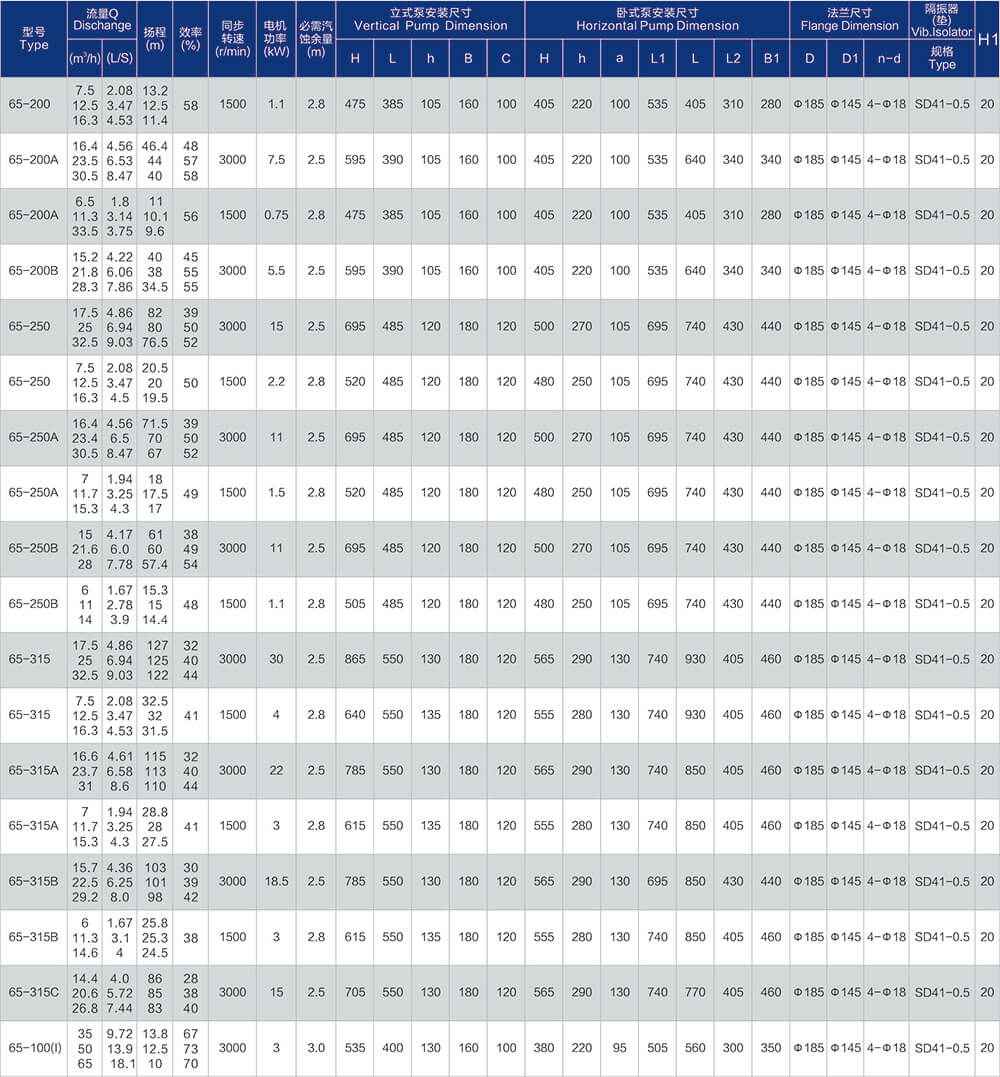 1、泵系统最高压力为1.6MPa.即泵吸入口压力+泵扬程≤1.6MPa。(订货时请注明系统工作压力、泵系统工作压力大于1.6MPa时,应在订货时另行提出。以便在制造时泵的过流部分和联接部分采用铸铁材料。)
